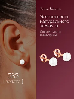 Серьги жемчуг гвоздики золотые 585 пробы пусеты