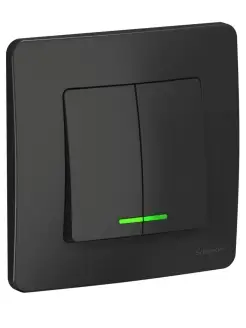 Выключатель двухклавишный черный без рамки (2 шт.)