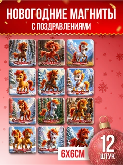 Новогодние магниты Лошадь 2026 символ года Большой набор