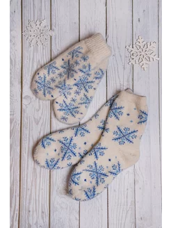 Носки и варежки комплект теплые шерстяные "Снежинка"