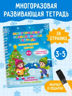Развивающая тетрадь новогодняя книга пиши рисуй стирай, 3+