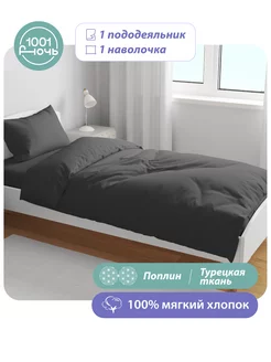 Постельное белье серое 1.5 спальное поплин