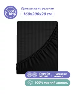 Простыня на резинке 160х200 страйп-сатин черный, Турция