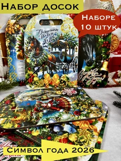 Доска разделочная новогодняя набор 3 штук символ года лошадь