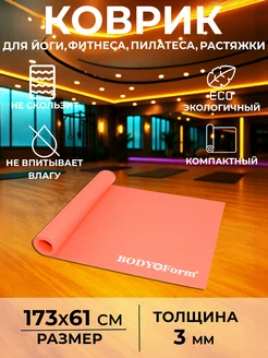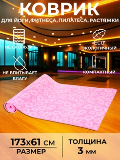 Коврик для йоги, фитнеса, гимнастики спортивный розовый 3-03