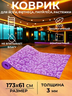 Коврик для йоги, фитнеса, гимнастики нескользящий фиолет 03