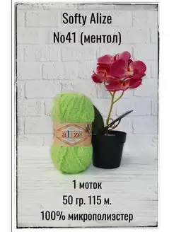 Плюшевая пряжа для вязания Softy 41 ментол 1 моток