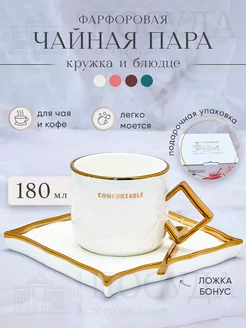 Кружка для кофе с блюдцем Чайная пара фарфоровая 180 мл