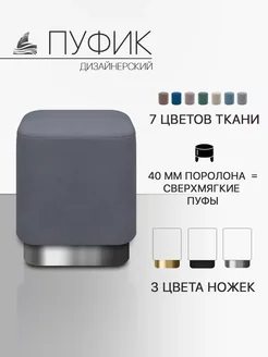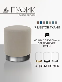Мягкий дизайнерский пуфик велюр с серебряным основанием