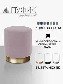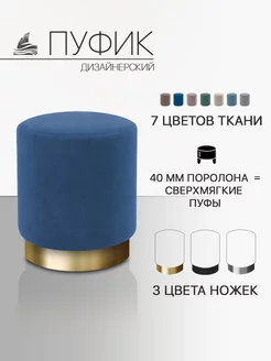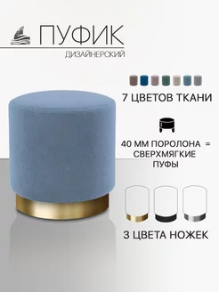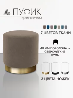 Мягкий дизайнерский пуфик велюр с золотым основанием
