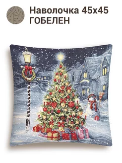 Наволочка новогодняя гобеленовая 45х45 см Зима в городе