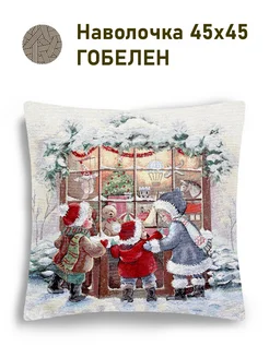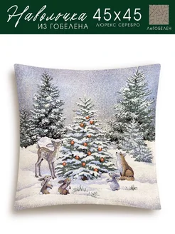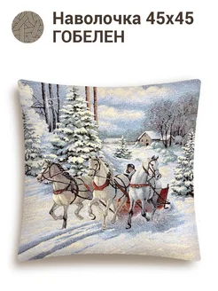 Наволочка декоративная новогодняя гобеленовая 45х45 Тройка