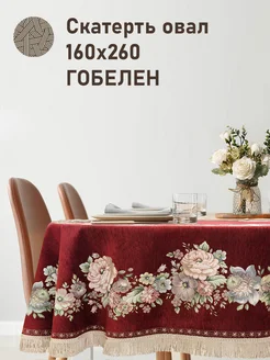 Скатерть гобелен шенилл овальная 160х260 см Зимний сон