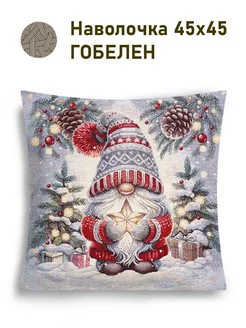 Наволочка декоративная новогодняя гобеленовая 45х45 см Гном