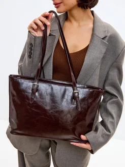 Сумка на плечо из эко-кожи большая Шоппер вмещает А4