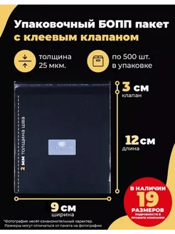 Упаковочные БОПП пакеты с клеевым клапаном 9х12 + 3см. 500шт
