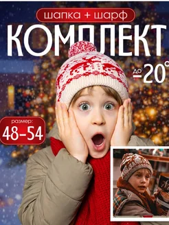 Шапка и Шарф с оленями Один дома - зимний комплект детский