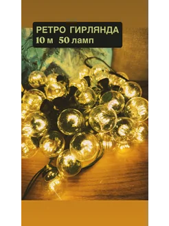 Гирлянда ретро уличная 10 м 50 лампочек белый тёплый свет
