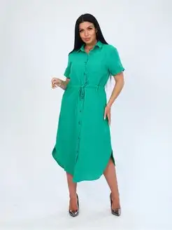 Платье рубашка летнее длинное с коротким рукавом