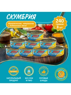 Скумбрия атлантическая натуральная с добавлением масла 8 шт