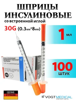Шприцы инсулиновые 1 мл со встроенной иглой 30g * 8 мм