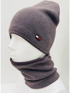 Шапка со снудом комплект на флисе зимняя Tommy Hilfiger