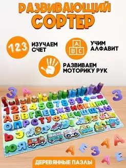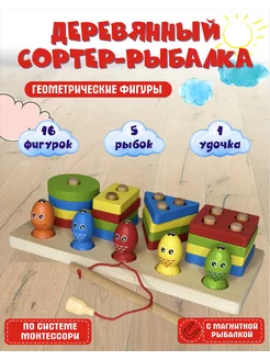 Рыбалка сортер деревянный 2в1 - геометрические фигуры