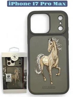 Кожаный чехол с вышивкой на айфон 17 про макс