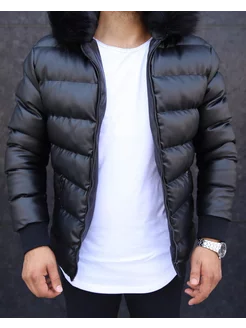 Куртка зимняя кожаная с капюшоном