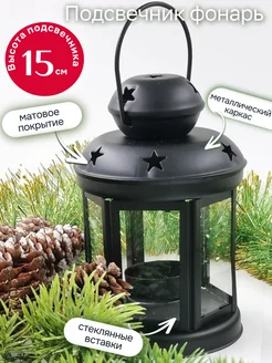 Подсвечник фонарь металлический со стеклом 22 см с дверцей
