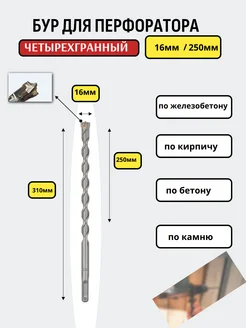 Бур четырехгранный для перфоратора 16х250 310мм (50)