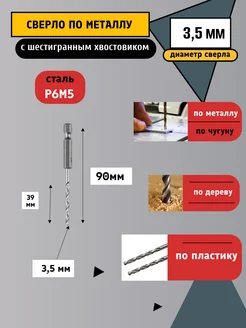Сверло с шестигранным хвостовиком по металлу 3,5мм (уп.2шт)
