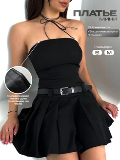 Платье праздничное летнее вечернее мини с корсетом и шортами