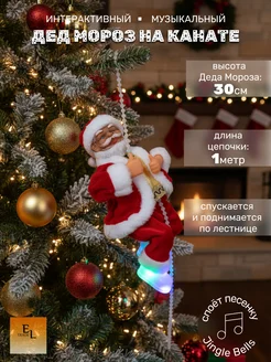 Дед Мороз интерактивный музыкальный лазающий 30см цепочка 1м