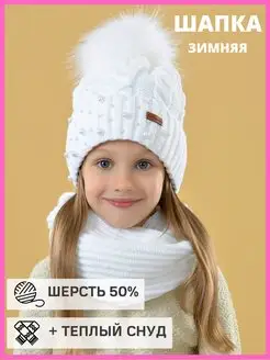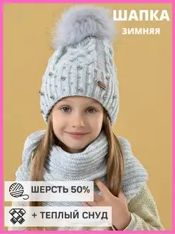 Шапка со снудом вязаная зимняя