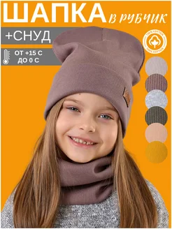 Шапка и снуд демисезонная в рубчик