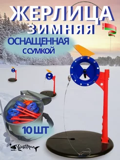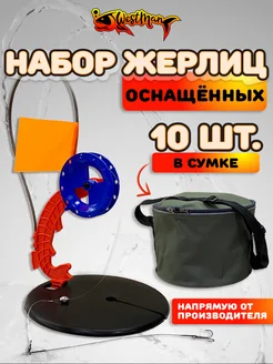 Жерлица зимняя оснащенная Стойка с сумкой, набор 10 штук