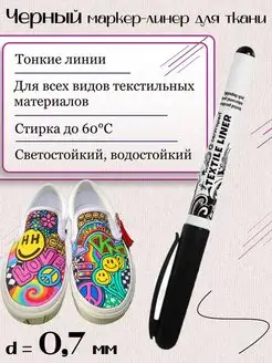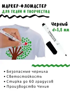 Черный несмываемый маркер,фломастер для росписи ткани
