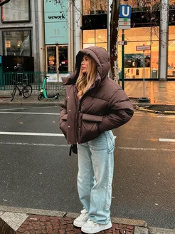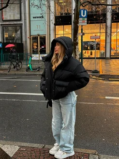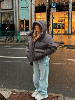 Куртка зимняя удлиненная с капюшоном оверсайз