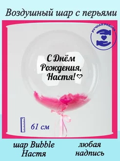 Воздушный шар Bubble с перьями Настя
