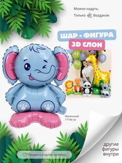 Шар 3D (17'' 40 см) Фигура на подставке, Слон, 1 шт