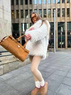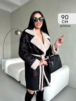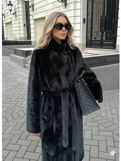 Шуба искусственная экошуба под норку без капюшона с поясом