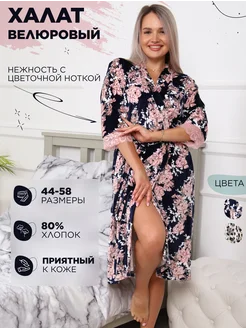 Велюровый халат теплый на запах цветы