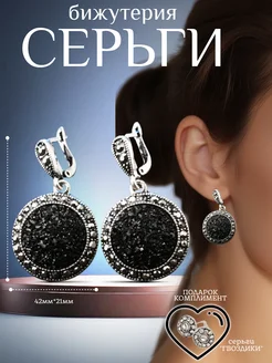 Серьги бижутерия вечерние с большим прозрачным камнем