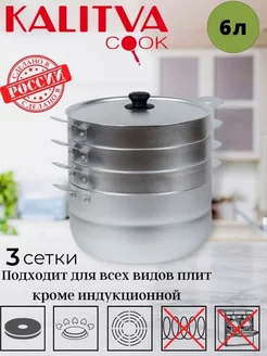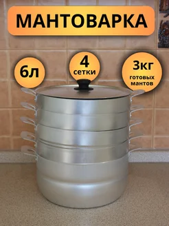 Мантоварка пароварка алюминиевая 6л, 4 сетки