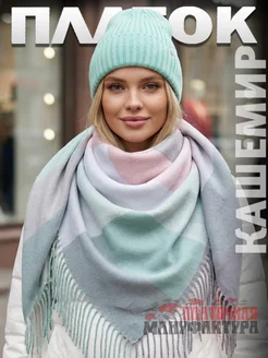 Платок в клетку, теплый кашемир на голову и шею "Валенсия"
