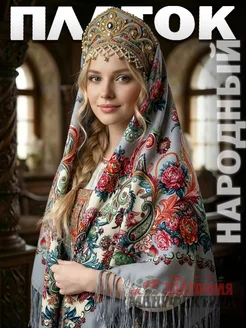 Платок на голову и шею, нарядный подарок "Русская красавица"
