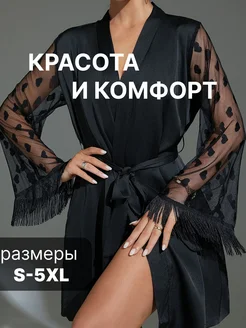 Халат домашний шелковый с кружевом