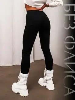 Джеггинсы с высокой посадкой на резинке утепленные узкие