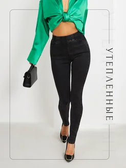 Джеггинсы утепленные с начесом джинсы с высокой посадкой